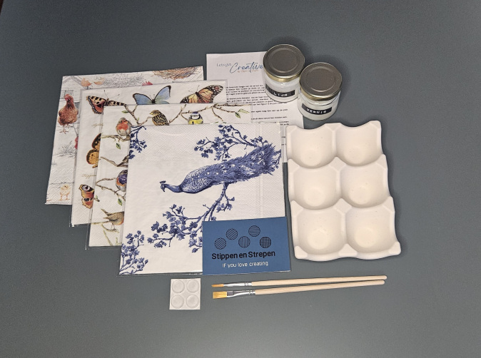 Maak door middel van de zelfde decoupage techniek jou eigen eierdoos in een door jou gekozen thema.